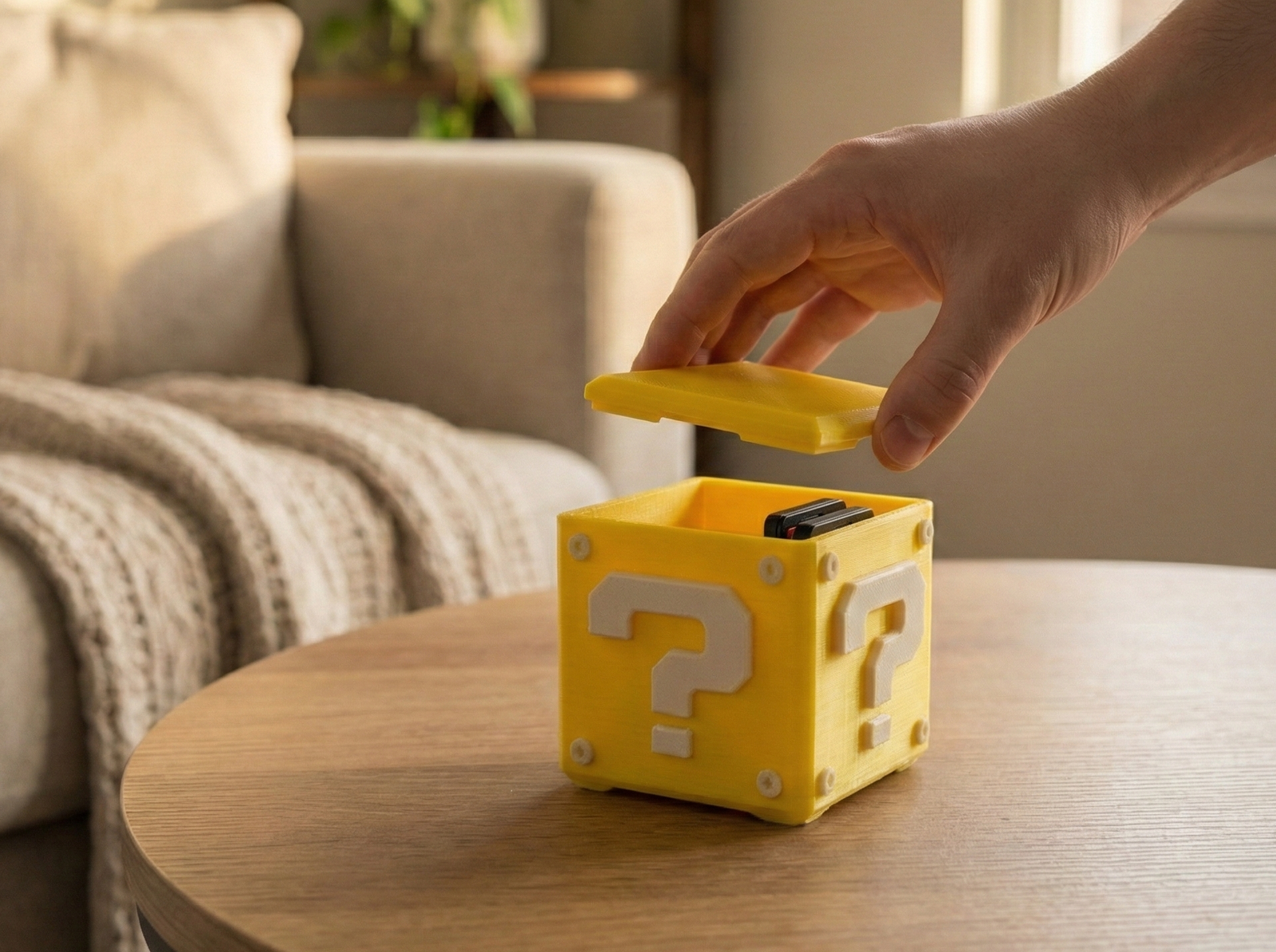 Apportez une touche de magie 8-bit à votre bureau ou votre étagère ! Cette boîte de rangement, fidèle réplique du célèbre bloc mystère, est la solution ultime pour les joueurs qui cherchent à allier style et organisation. Fabrication de haute qualité, elle ne se contente pas de stocker vos jeux : elle les met en valeur.