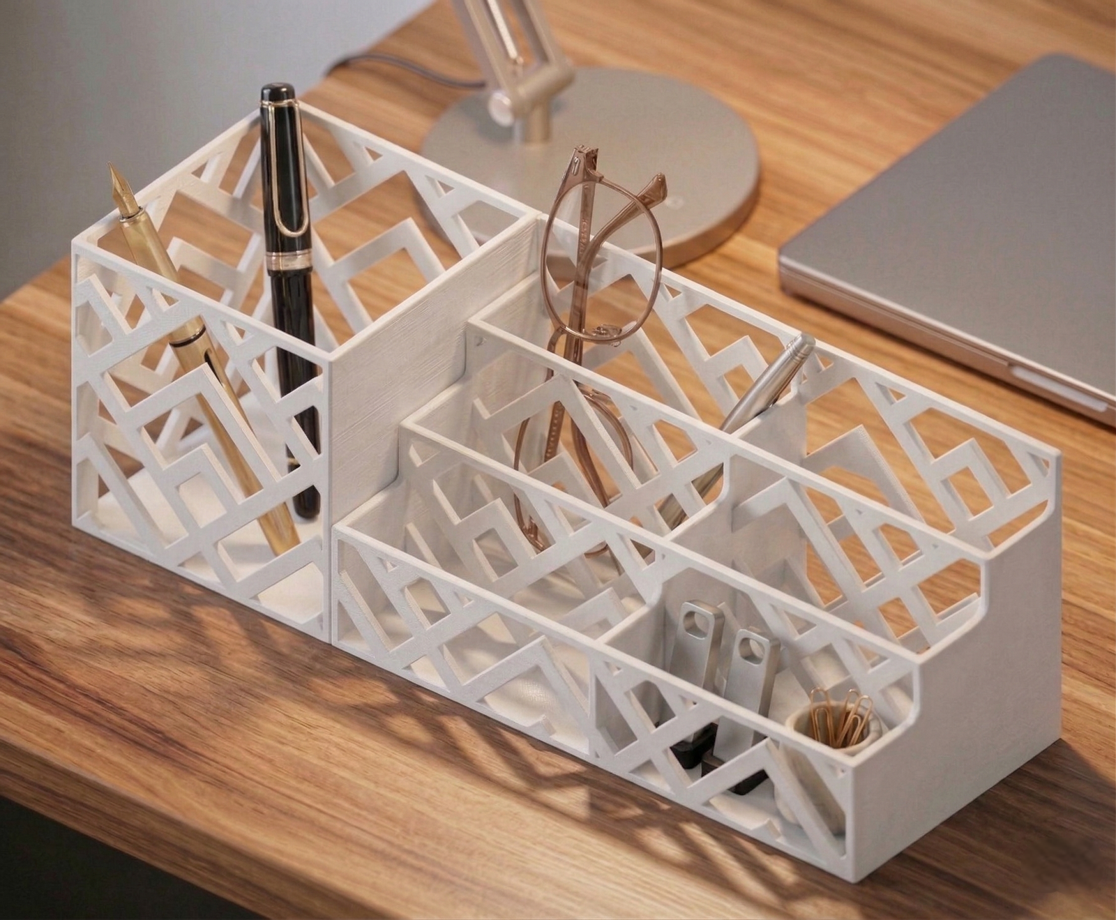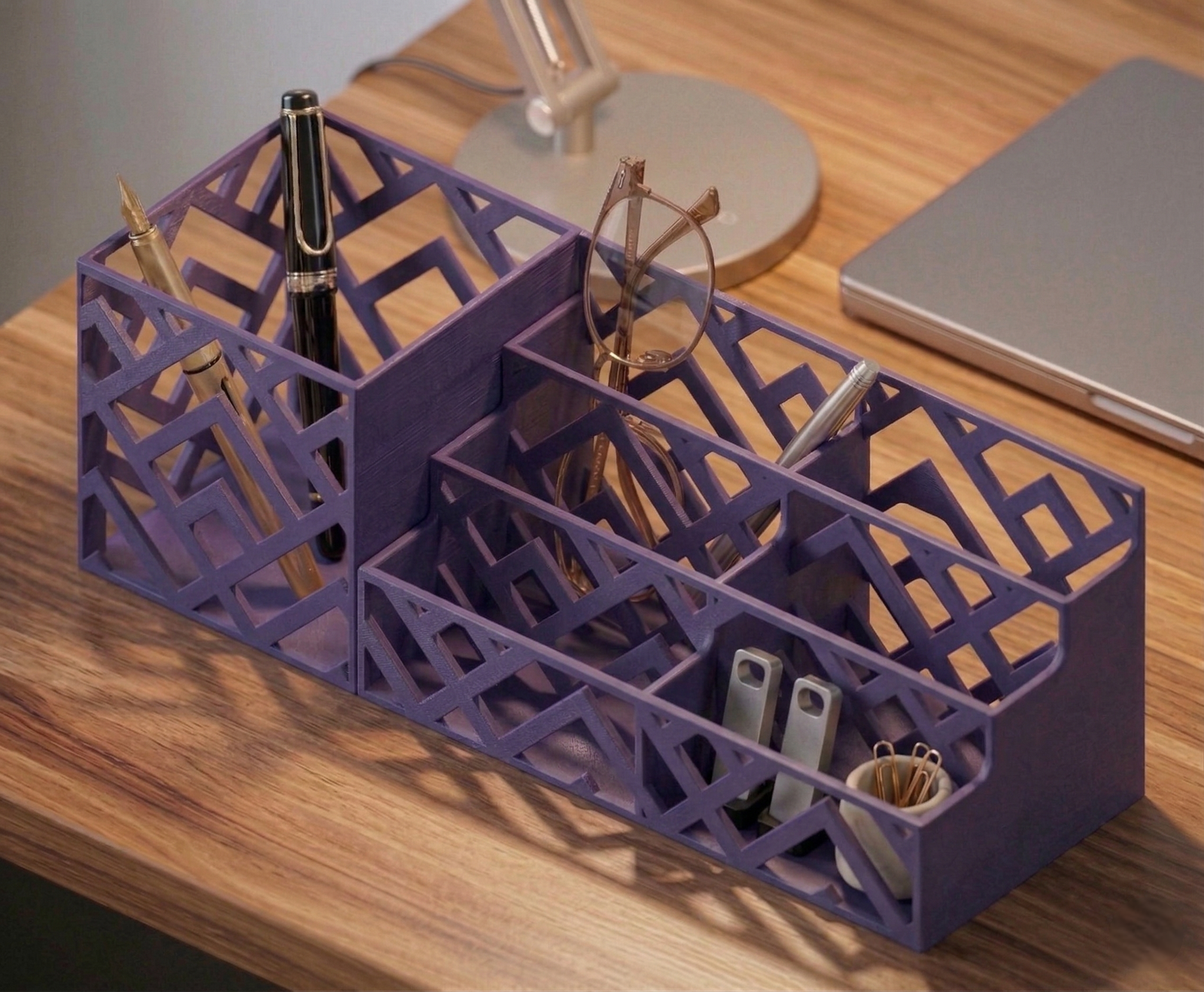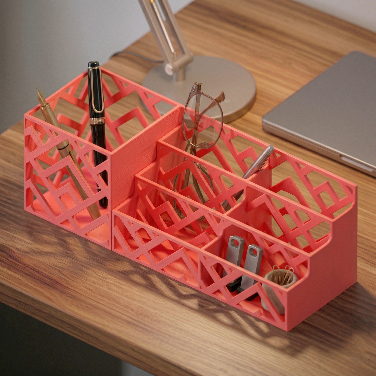 Fatigué des bureaux encombrés et sans âme, même avec des rangements standard ? Découvrez la version démesurée du Prism Hexa : la Taille L. C’est l’accessoire de rangement indispensable pour ceux qui ont besoin d’un espace décuplé sans sacrifier le design. Conçu grâce à la précision de l’impression 3D, cet organiseur de 300 mm de long se distingue par ses motifs géométriques complexes qui jouent avec la lumière et la transparence.