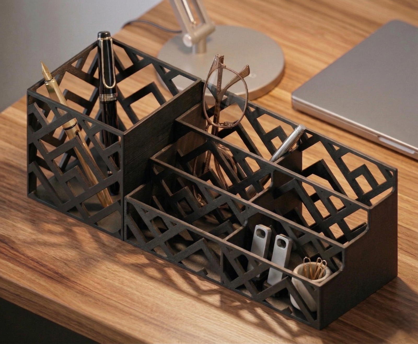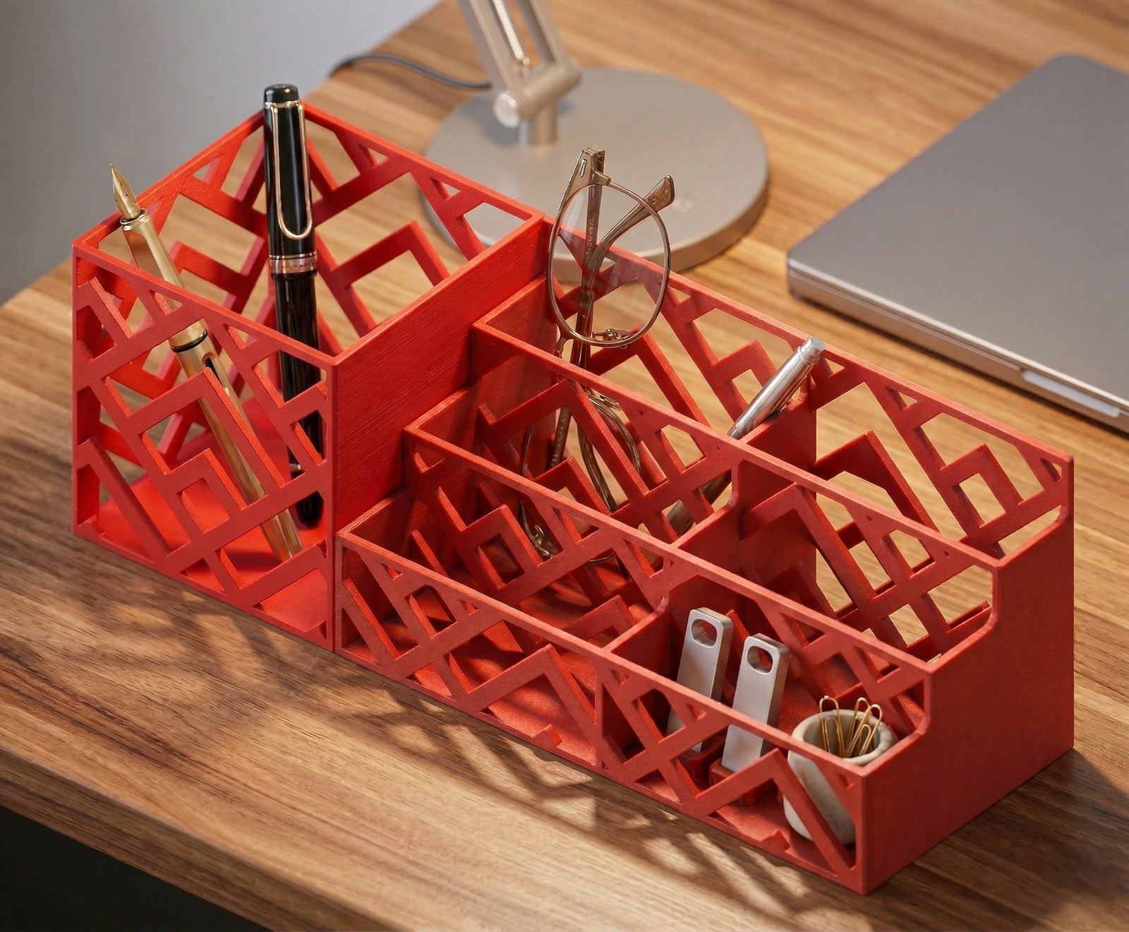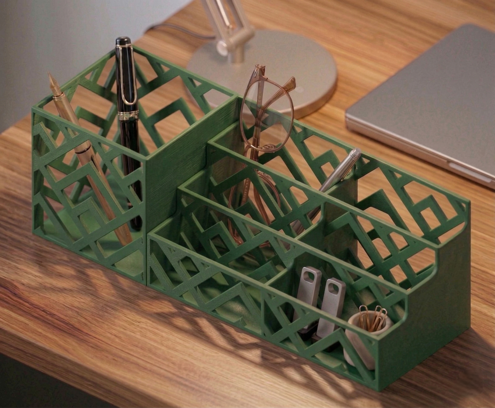 Fatigué des bureaux encombrés et sans âme, même avec des rangements standard ? Découvrez la version démesurée du Prism Hexa : la Taille L. C’est l’accessoire de rangement indispensable pour ceux qui ont besoin d’un espace décuplé sans sacrifier le design. Conçu grâce à la précision de l’impression 3D, cet organiseur de 300 mm de long se distingue par ses motifs géométriques complexes qui jouent avec la lumière et la transparence.